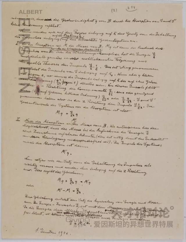 包含爱因斯坦亲笔手写的E=mc²公式的手稿原件将在展览中呈现